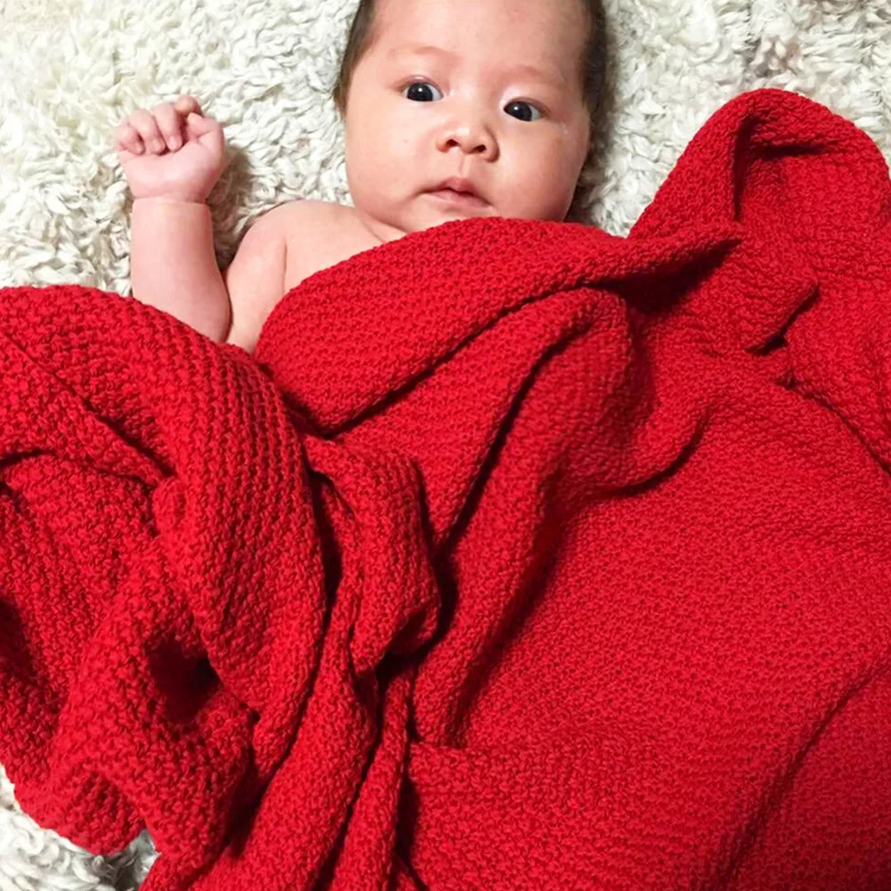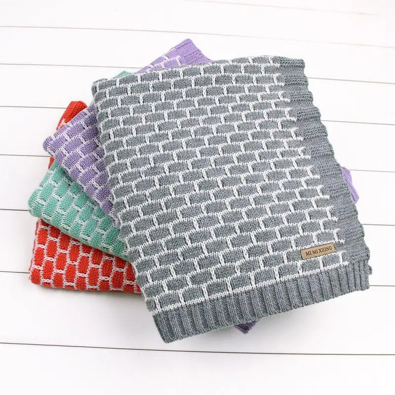Images of Newborn Baby Blanket Infant Cotton Knitted Crochet Blankets Swaddle Wrap Soft Stretch Crib Sleeping Bedding for Boys Girls Kids :