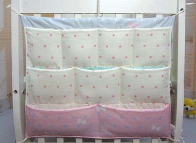 Picture of Cute Bears Crib Hanging Storage Bag Baby Bed Diaper Bottles Toys Organizer Cotton Linens Pockets for Baby Bedding Set One Piece :