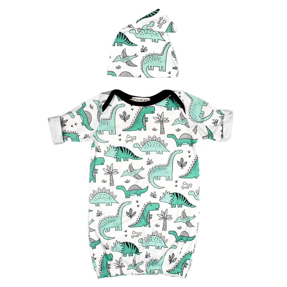 Images of 2018 Newborn Infant Green Dinosaur Print Long Sleeve Sleeping Bags+Hat Sleepsacks Baby Boys Girls Newborn Sleeping Envelope Baby :