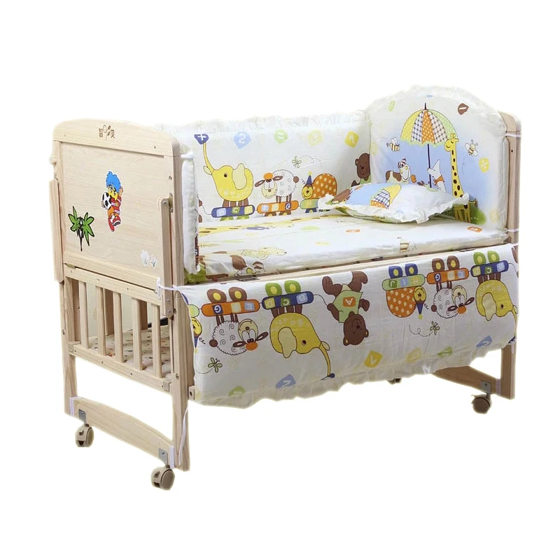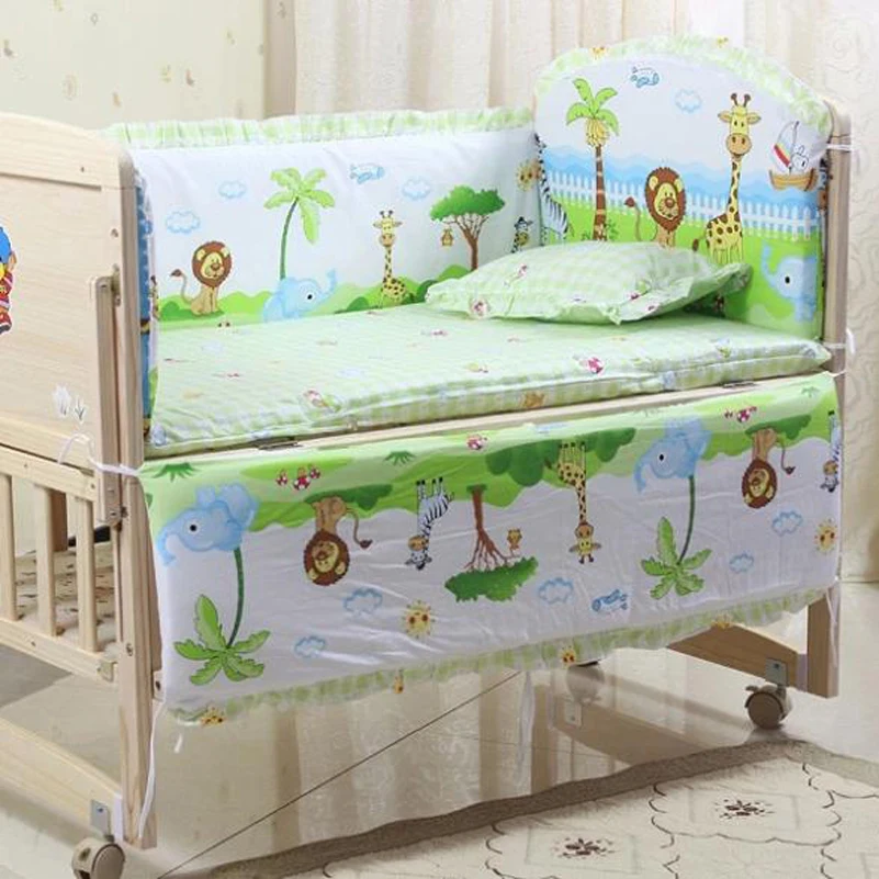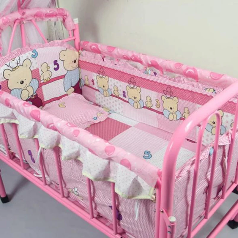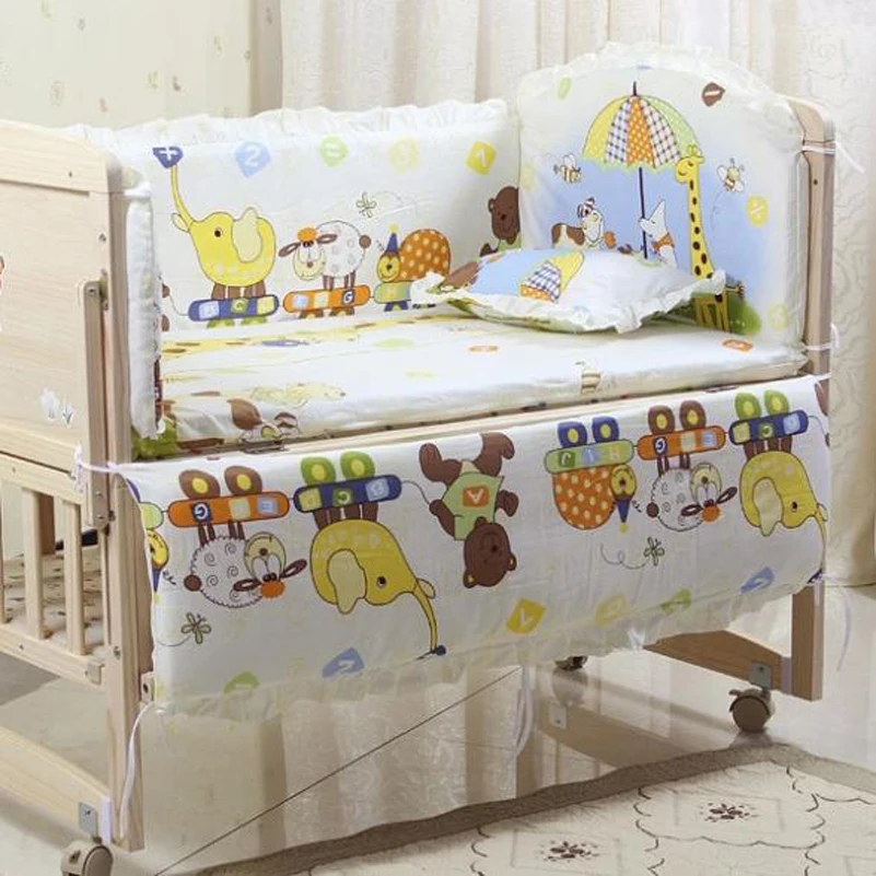 Images of 5PCS/SET Baby bedding sets 100% cotton baby bedclothes Cartoon crib bedding set include pillow bumpers mattress :