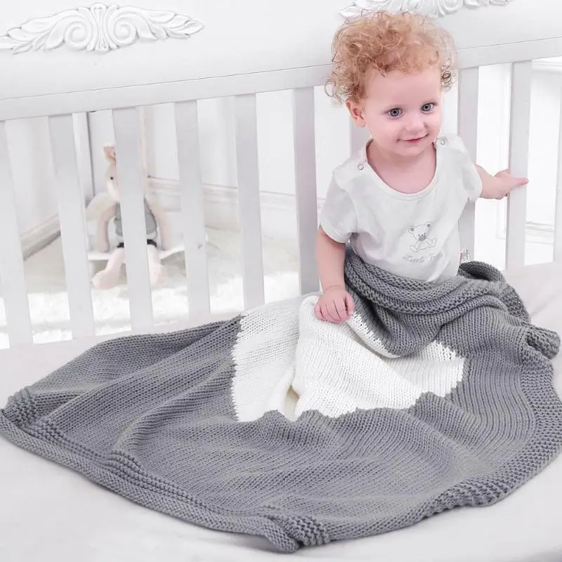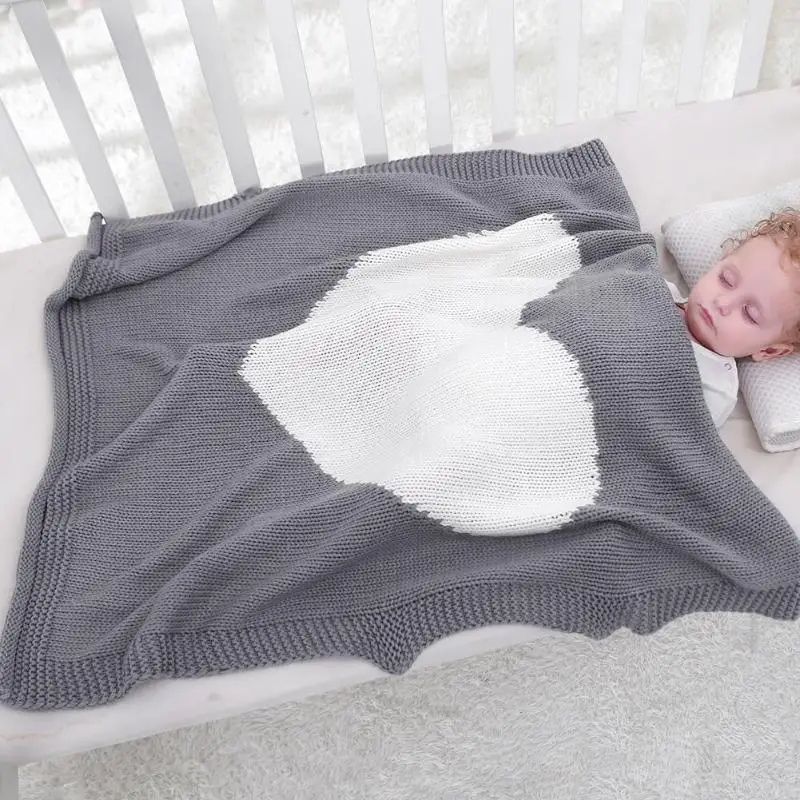 Picture of Kids Knitting Blanket Baby Newborn Heart Shaped Swaddle Wrap Blankets Bedding Quilt Play Mat Children Bath Towel :