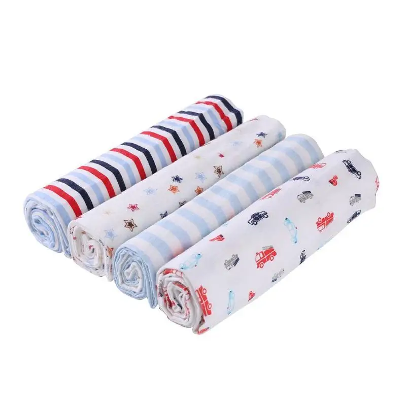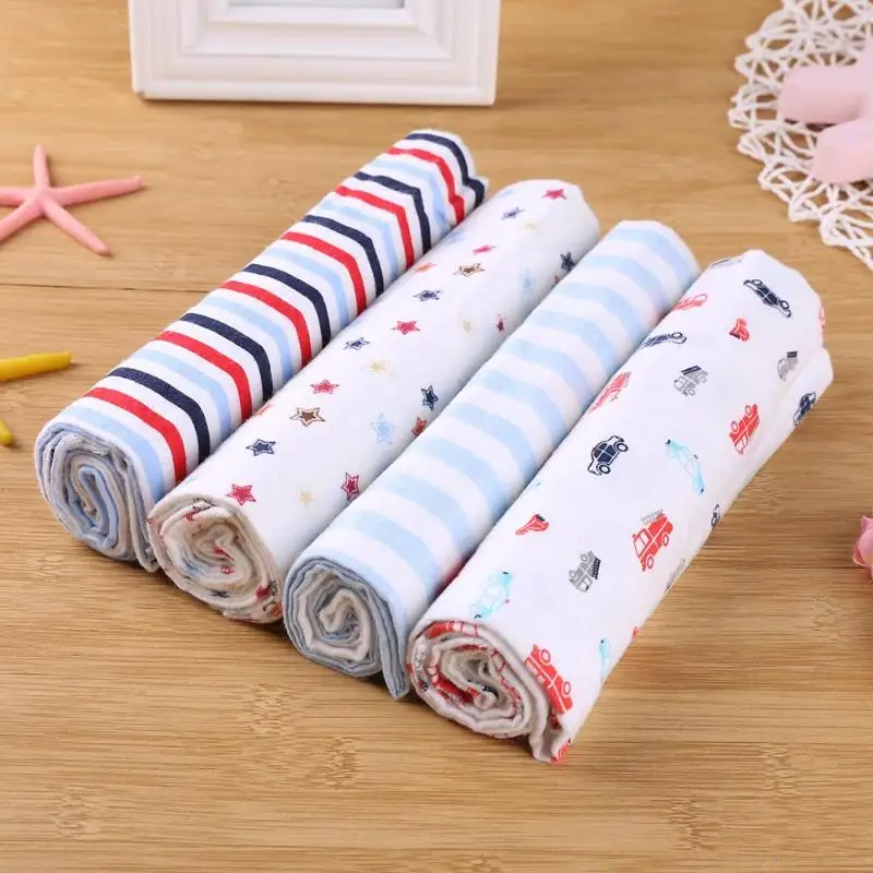 Picture of 4pcs/set Baby Blankets Bedding Infants Bath Towel Bedsheet Cotton Cute Print Newborns Swaddle Wrap Receiving Blanket :