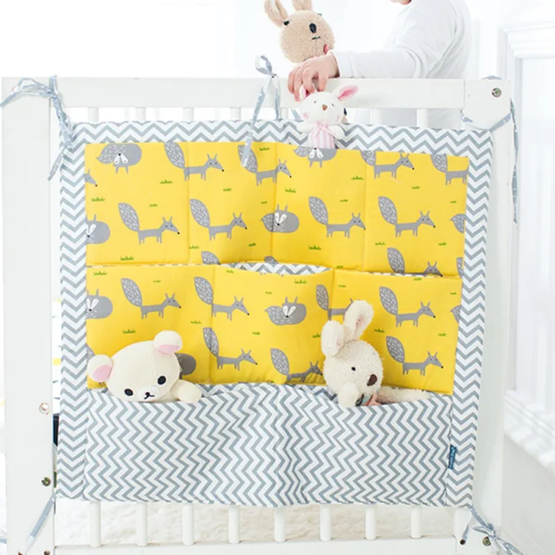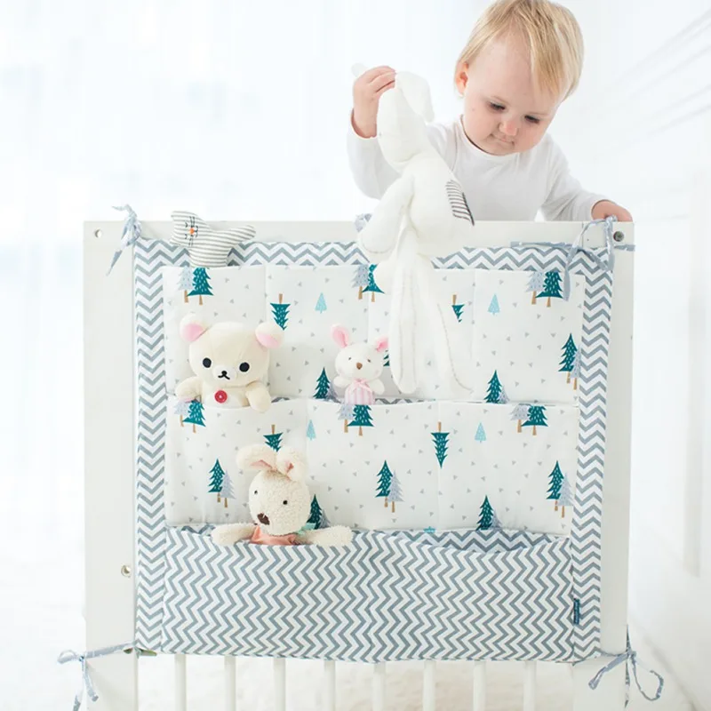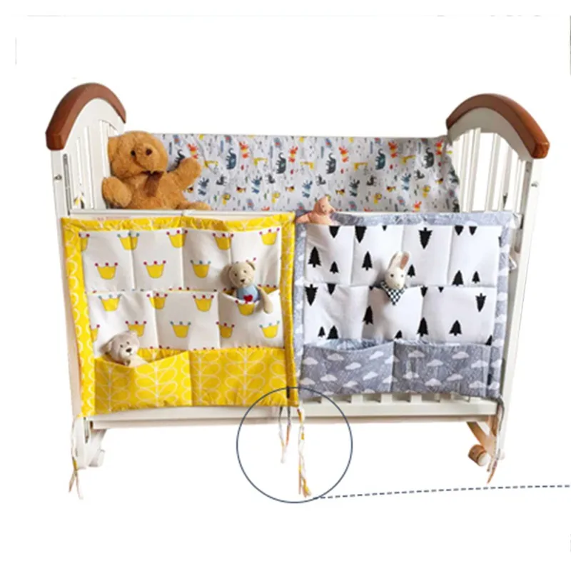 Grab Muslin Bed Hanging Storage Bag Baby Crib Bed Brand Baby Cotton Crib Organizer 60 * 50cm Toy Diaper Pocket for Crib Bedding Set Right Here and Right Now.