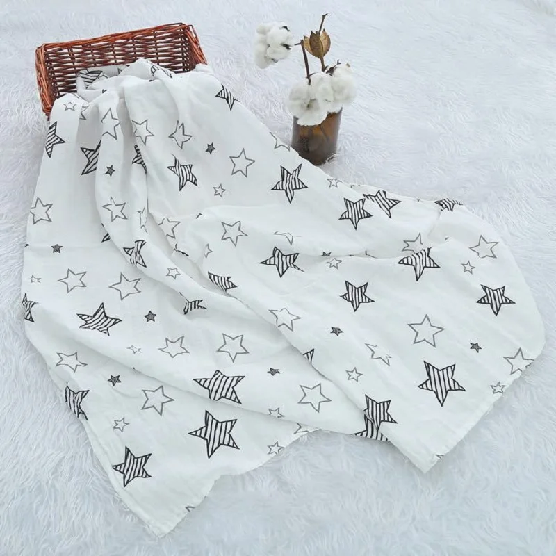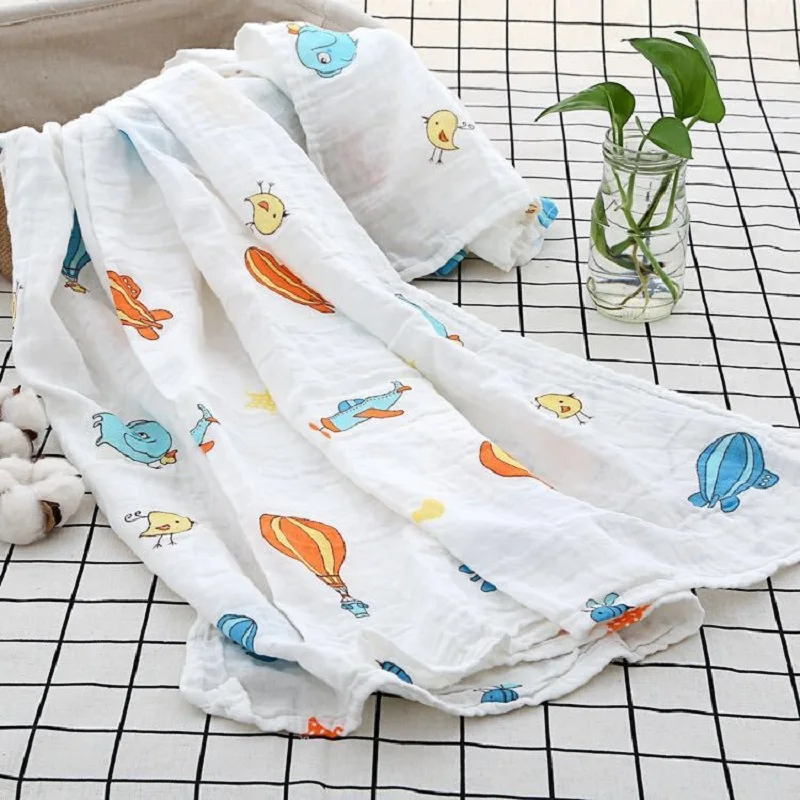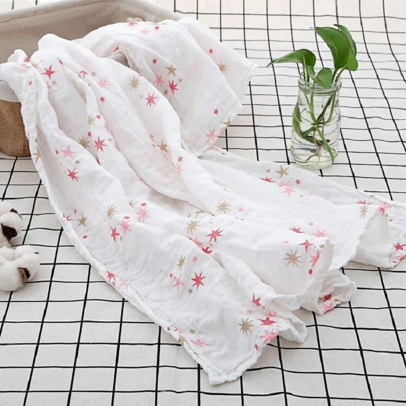 Picture of Baby Muslin 2 layers Summer Multifuntional Blanket Children Cotton Soft Quilt Newborn Baby Wrap Swaddle Gauze Bath Towel 120*120 :