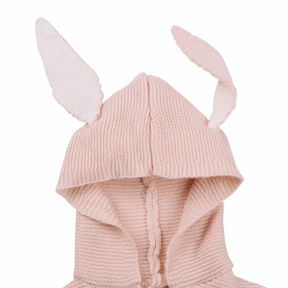 Picture of Newborn Baby Hooded Blanket Cartoon Rabbit Ear Swaddling Infant Kids Sleeping Bag Soft Solid Wrap Knitted Photography Prop :