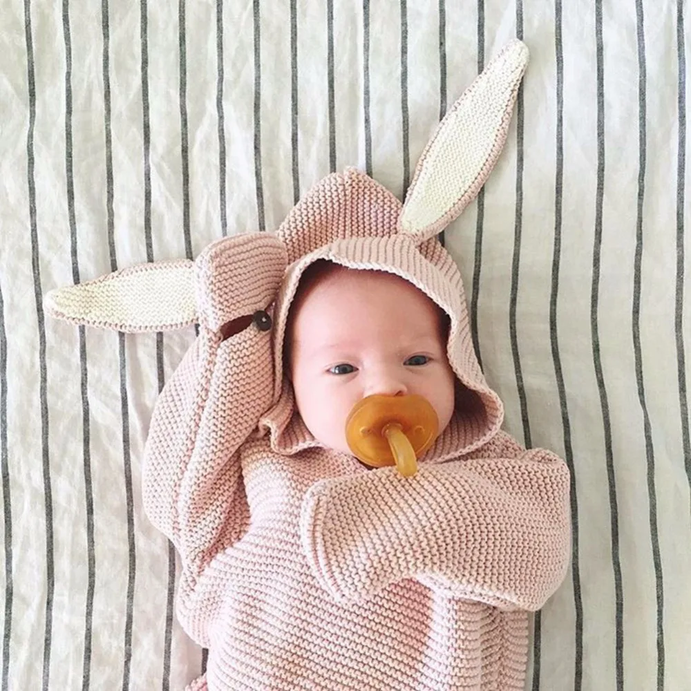 Grab Newborn Baby Hooded Blanket Cartoon Rabbit Ear Swaddling Infant Kids Sleeping Bag Soft Solid Wrap Knitted Photography Prop Right Here and Right Now.