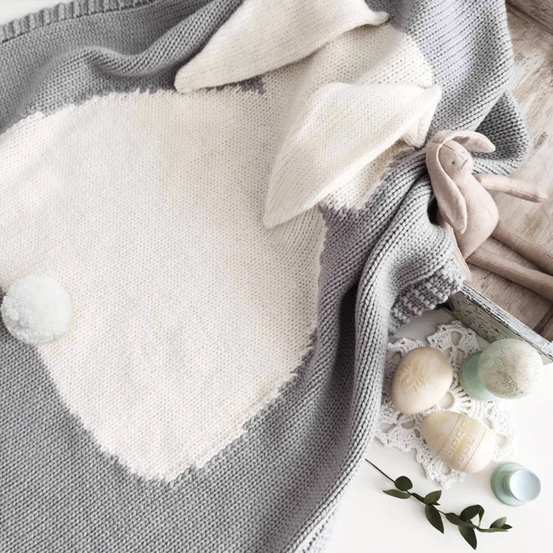 Picture of ANKRT Blanket Cute Rabbit Ears Children's/Baby/Kids Cotton Thread Knitted For Bed Sofa Mantas BedSpread Bath wool quilt boys :