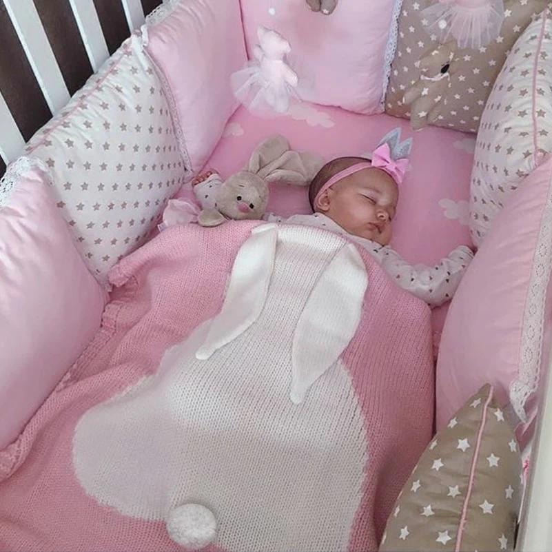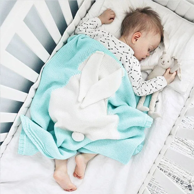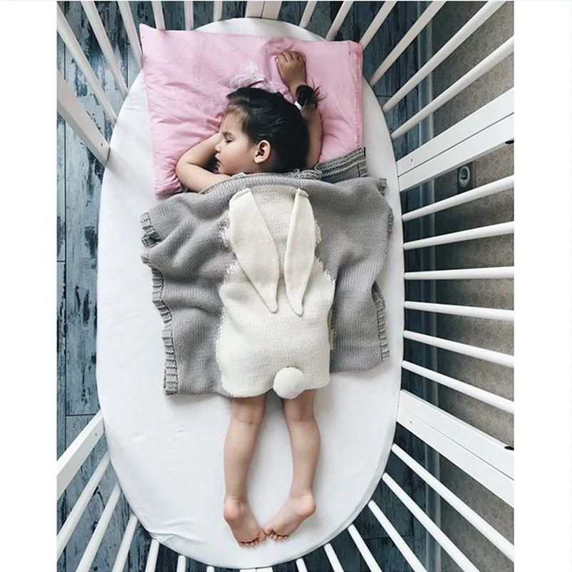 Buy ANKRT Blanket Cute Rabbit Ears Children's/Baby/Kids Cotton Thread Knitted For Bed Sofa Mantas BedSpread Bath wool quilt boys Right Here and Right Now.