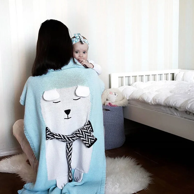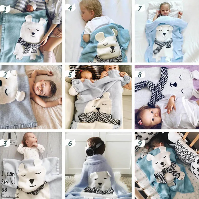 Picture of Baby Blanket Knitted Sleeping bags Soft Warm Swaddle Kids Bath Towel Play Mat Infant Stroller Cover Blankets Children Knitted :