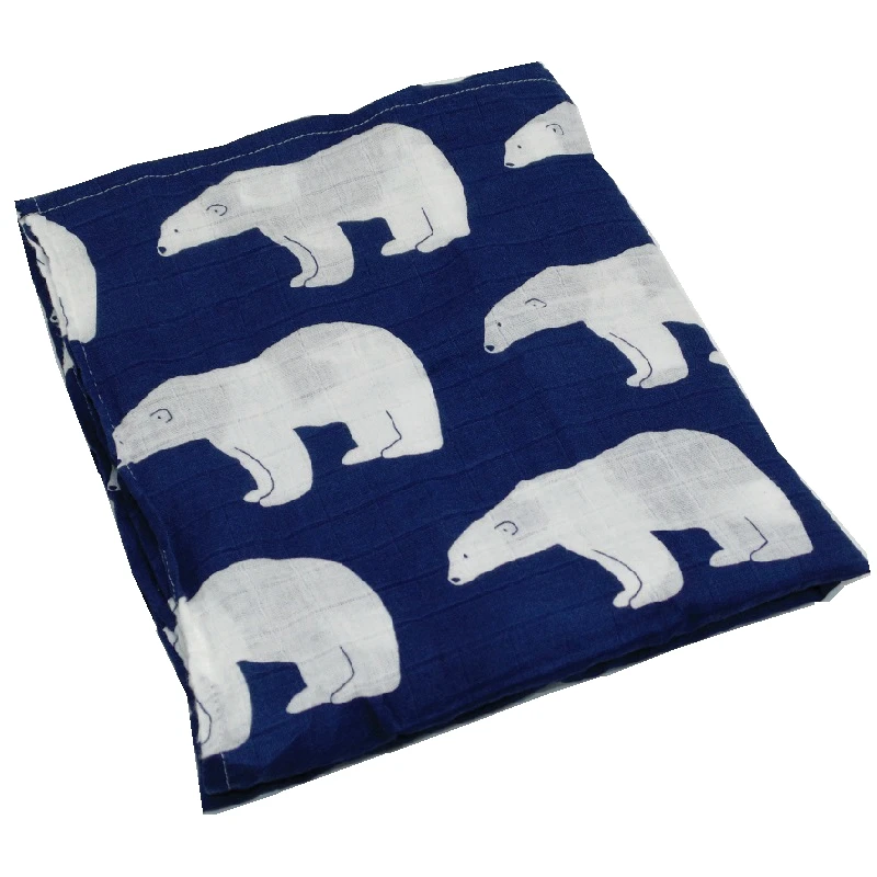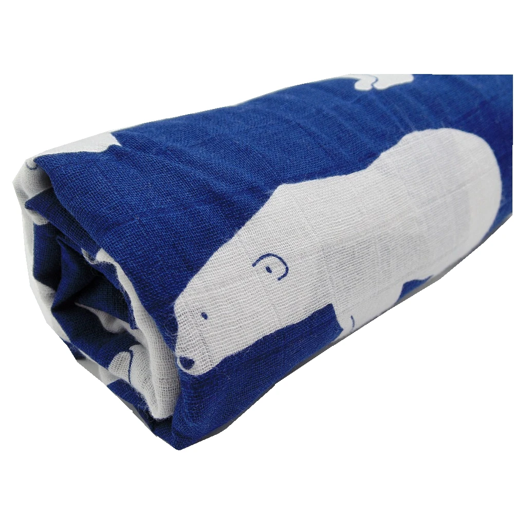 Images of 120x120 CM 100% Cotton Muslin Blankets Polar Bear Soft Baby Blanket Bedding Swaddle Wrap For Newborn Swaddling Bath Towel :