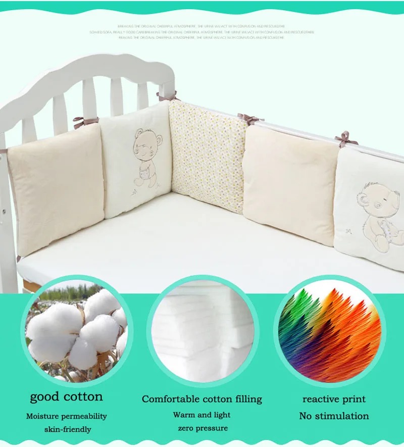 Get Children infant crib bumper bed protector baby kids cotton cot nursery for bear bumper boy and girl bedding 6 pc plush Right Here and Right Now.